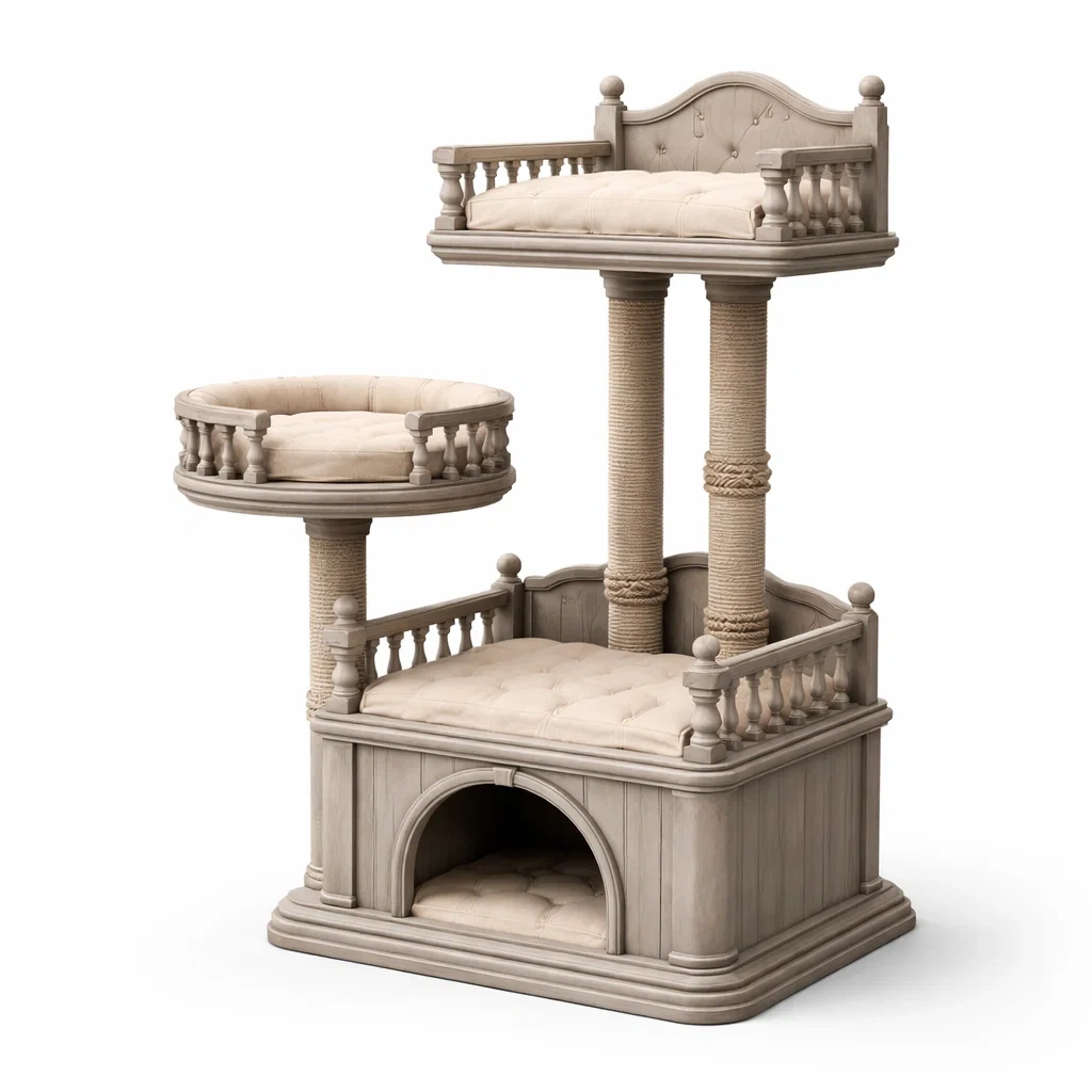 Funktion: Kratzpfosten: 2, Plattformen: 3, inklusive oberer Rückzugsort und mittlerer runder Plattform, Versteck: Integrierter Schlafbereich