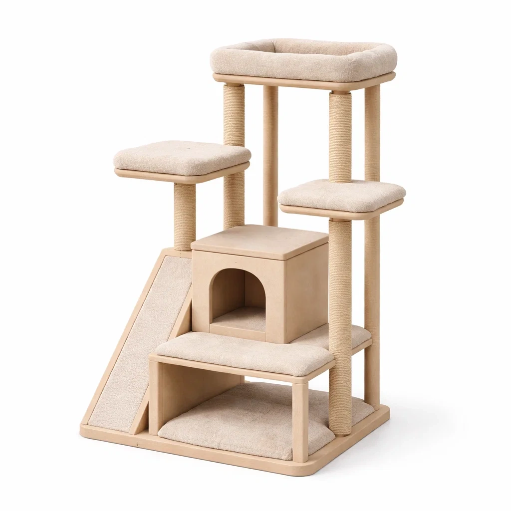 Kratzbaum holz polyester und sisal beige 59 x 39 x 89 cm
