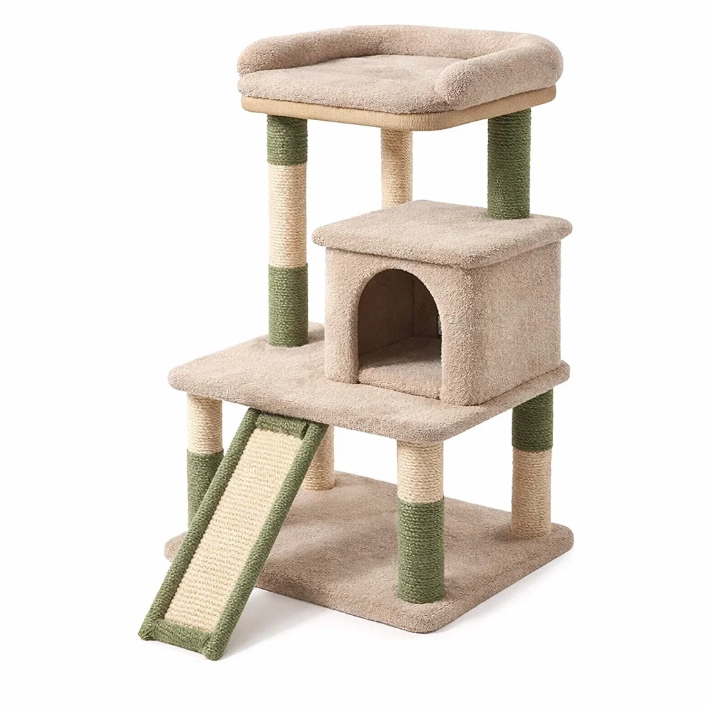 Kratzbaum sisal und polyester beige grün 48 x 48 x 86 cm